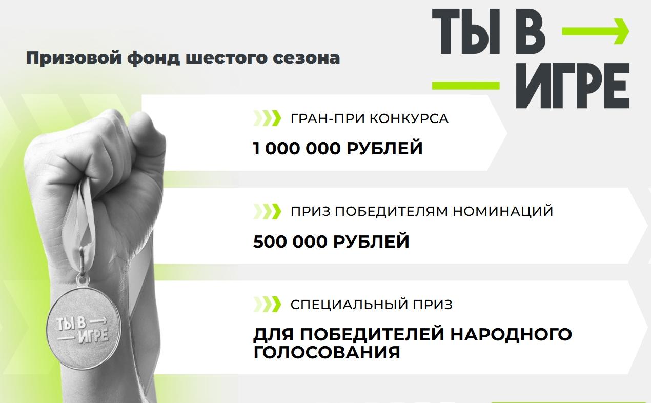 Призовой фонд: по 500 тыс. ₽ победителям номинаций, 1 млн ₽ — обладателю гран-при,