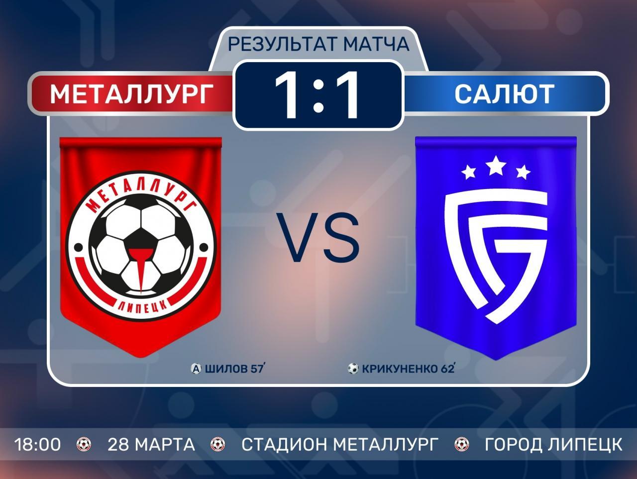Наша команда принимала «Салют» из Белгорода в рамках 1‑го тура дивизиона «Б», подгруппы № 3. Итог напряжённого матча — 1:1!